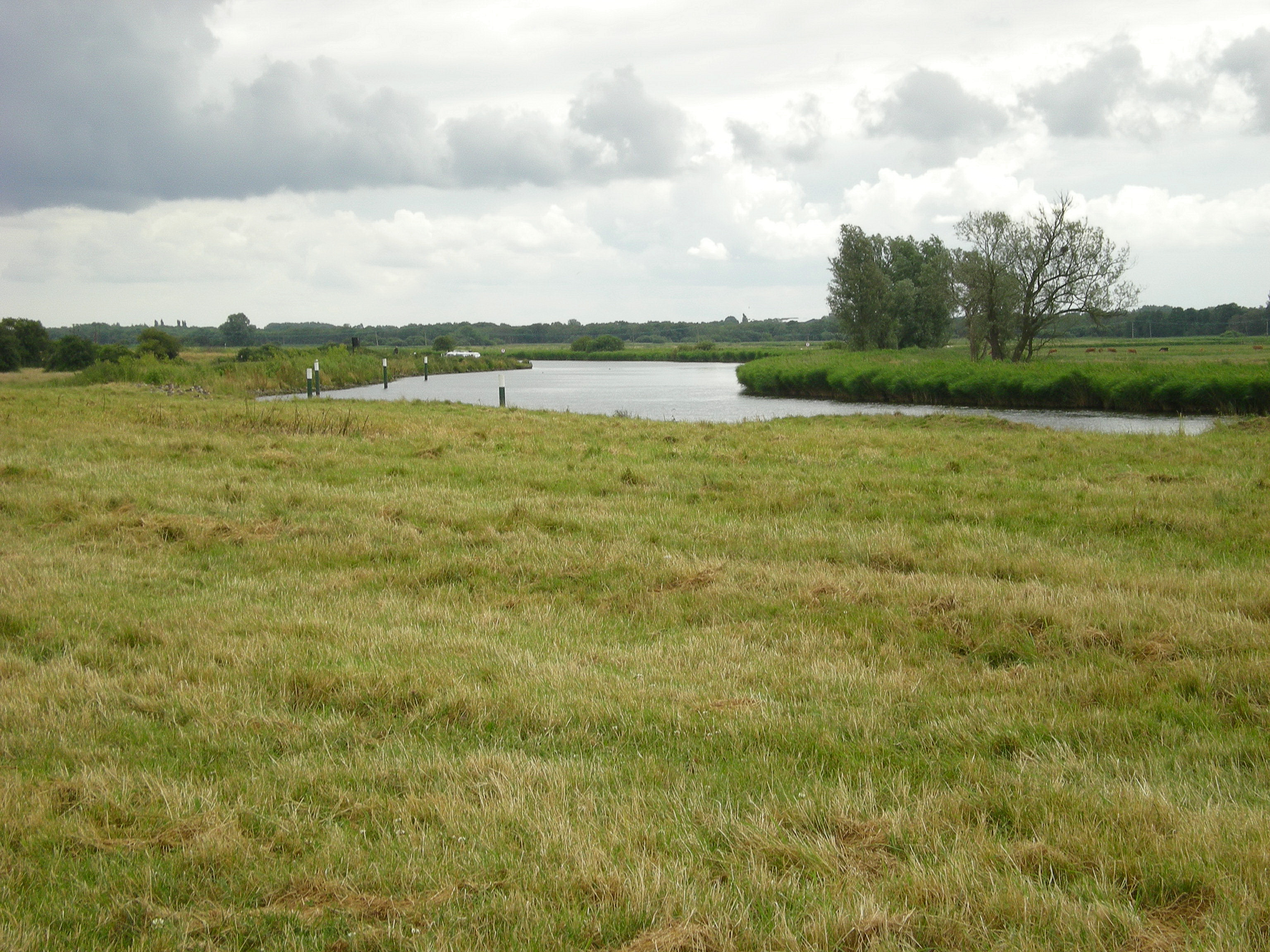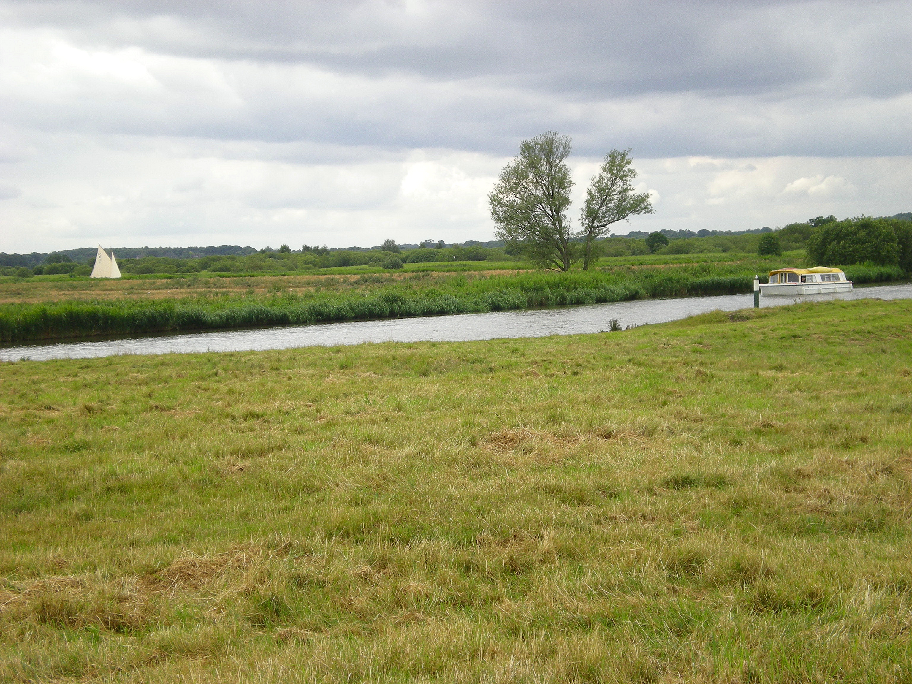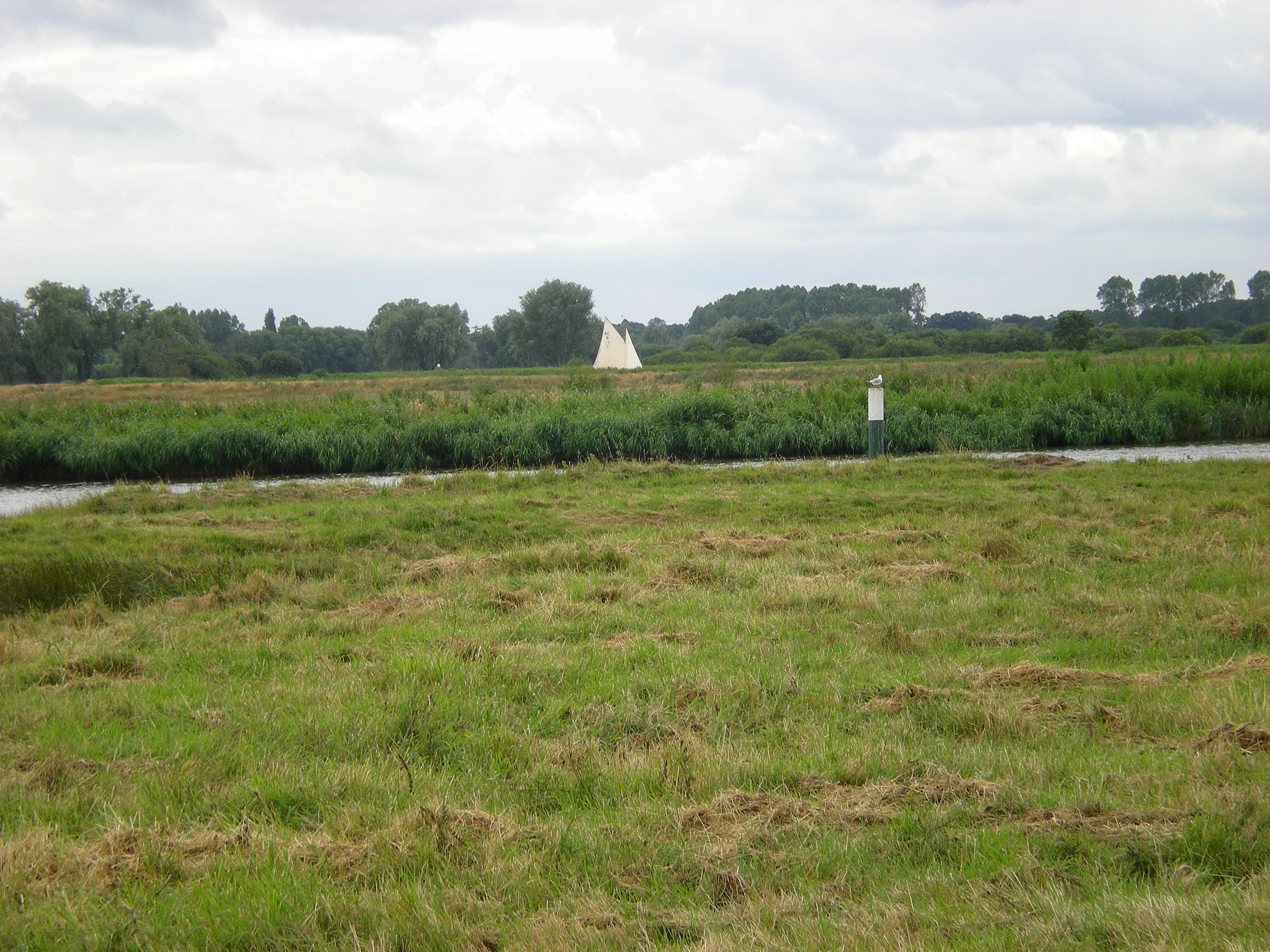 The land is so flat that sailboats cruising the broads appear, from a distance, to be skimming across the green fields.