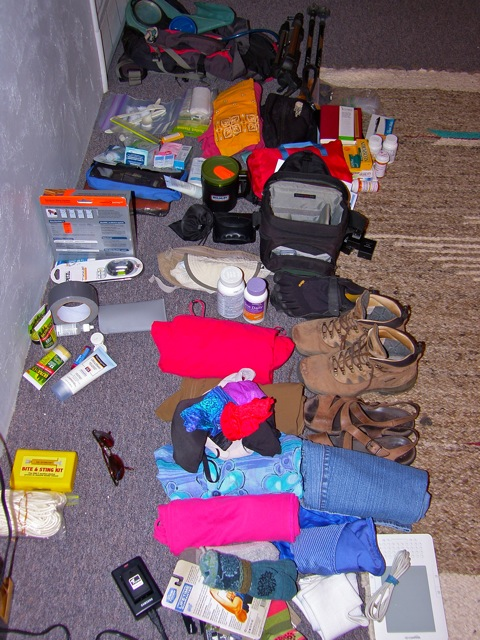 attempted. In 1999, I trekked around the world. I remember putting things in and taking things out of a large backpack, trying to get the weight down to 33 pounds, less than a third of my body weight. I was proud when I discovered I could carry on my back everything I needed for a six-month tour of Europe and Asia-which turned into eight. This time, I'm traveling to Guatemala. Tonight I'm putting things in and taking things out of a small daypack that will hold only 20 pounds, less than a fifth of my body weight-I've gained a few since '99. Each time I leave home, I discover how much happier I am with less.