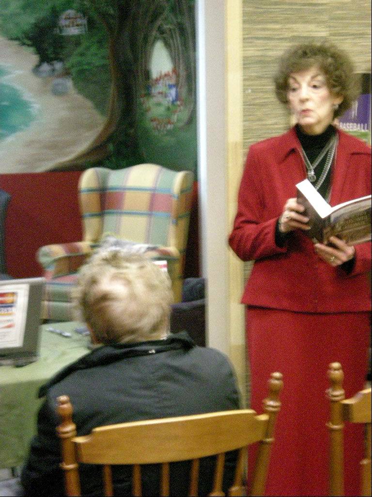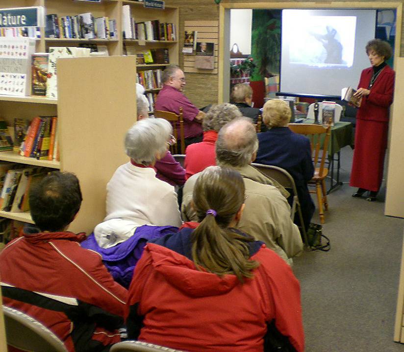 I read an excerpt from the book— enough to take them up to the blood-spattered body, of course, then spoke about how this story, that I had wanted to tell for so long, came to be after I first met St. Cuthbert in 1986 on a trip to Durham.  It took 4 contracts, 2 completed manuscripts and my daughter going off to study in a monastery for me to get it right, but for me the wait has been worth it.  I then answered questions and showed my trailer.  Well, that's the literal truth— I showed my trailer, for everyone to see, but for some strange reason, the sound didn't make it through the projector, so no one could hear the voicing or music.  Everyone was very kind about looking at the pictures anyway. (Trailer with full sound is on the homepage of my website.)