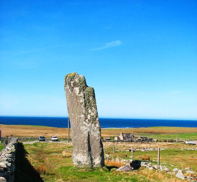 They stop at the magnificent Truishal Stone, the largest Standing stone in Scotland.